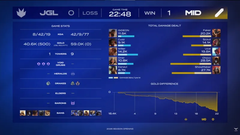 中单队选用:Faker兰博、Scout蔚、Ucal永恩、Chovy烬、ShowMaker妖姬